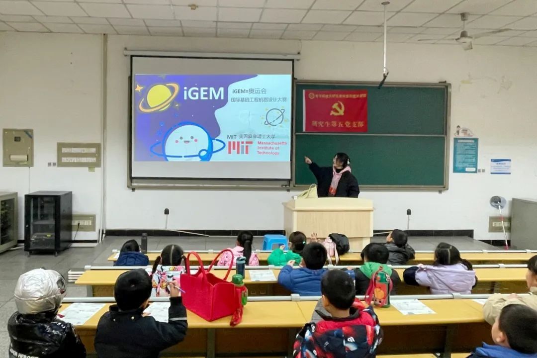 將腦與生態(tài)共生的概念引入青少年群體中,培養(yǎng)他們對(duì)可持續(xù)發(fā)展和環(huán)境保護(hù)的意識(shí),讓年輕一代了解并體驗(yàn)城市生活中不易察覺(jué)到的人和自然的緊密聯(lián)系。為了將環(huán)境保護(hù)理念擴(kuò)展輻射到更年輕的人群,2023年12月23日生命科學(xué)與技術(shù)學(xué)院黨支部舉辦探秘合成生物學(xué)的環(huán)保科普課堂活動(dòng)“大話(huà)腦與生態(tài)”——科普微課堂,活動(dòng)依托國(guó)際基因工程機(jī)器設(shè)計(jì)大賽(iGEM)十年金牌比賽項(xiàng)目,面對(duì)參與的小學(xué)生開(kāi)展了一次生動(dòng)有趣的科普活動(dòng)。本次活動(dòng)以趣味生動(dòng)、寓教于樂(lè)的方式讓科普知識(shí)走出高校,走入大眾,推動(dòng)節(jié)能環(huán)保理念入腦入心。通過(guò)講述如何將天馬行空的想法轉(zhuǎn)變?yōu)楝F(xiàn)實(shí)的應(yīng)用,引發(fā)學(xué)生興趣。將晦澀難懂的知識(shí)轉(zhuǎn)化為小朋友們熟悉的游戲,寓教于樂(lè)。通過(guò)漫畫(huà)故事《一張紙的一生》,介紹了紙張生產(chǎn)線(xiàn)的高污染高耗能,讓小朋友們思考辦公室廢紙?jiān)偕囊饬x。以動(dòng)手回收再利用一張廢紙,讓同學(xué)們體會(huì)到廢紙?jiān)偕牟灰祝庾R(shí)到環(huán)保的重要意義。講述通過(guò)生物酶法實(shí)現(xiàn)紙張脫墨的原理,讓同學(xué)們了解到生物世界中酶與合成生物學(xué)的神奇魔力。這堂生動(dòng)有趣的課程也引起了小朋友們的強(qiáng)烈反響,在他們小小的心中種下了綠色發(fā)展、生態(tài)環(huán)保的種子。