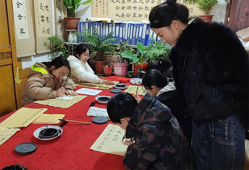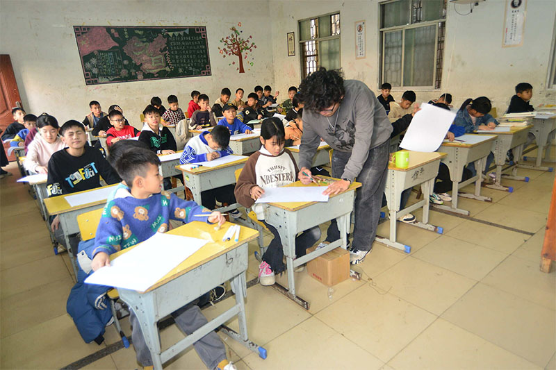 活動中期,團隊成員根據前期調研結果結合專業特色開展紅色文化公益美育教學課堂,將紅色文化融入美術課和書法課,帶領學生回顧紅色經典,傳承紅色基因,豐富紅色美育價值。本次義教受到了教師和學生的一致好評。在課后,老師們也分享了一些紅色文化與教學相結合的案例和經驗,如舉辦紅色主題的文藝匯演和藝術節、策劃“黨史+”知識競賽活動等。