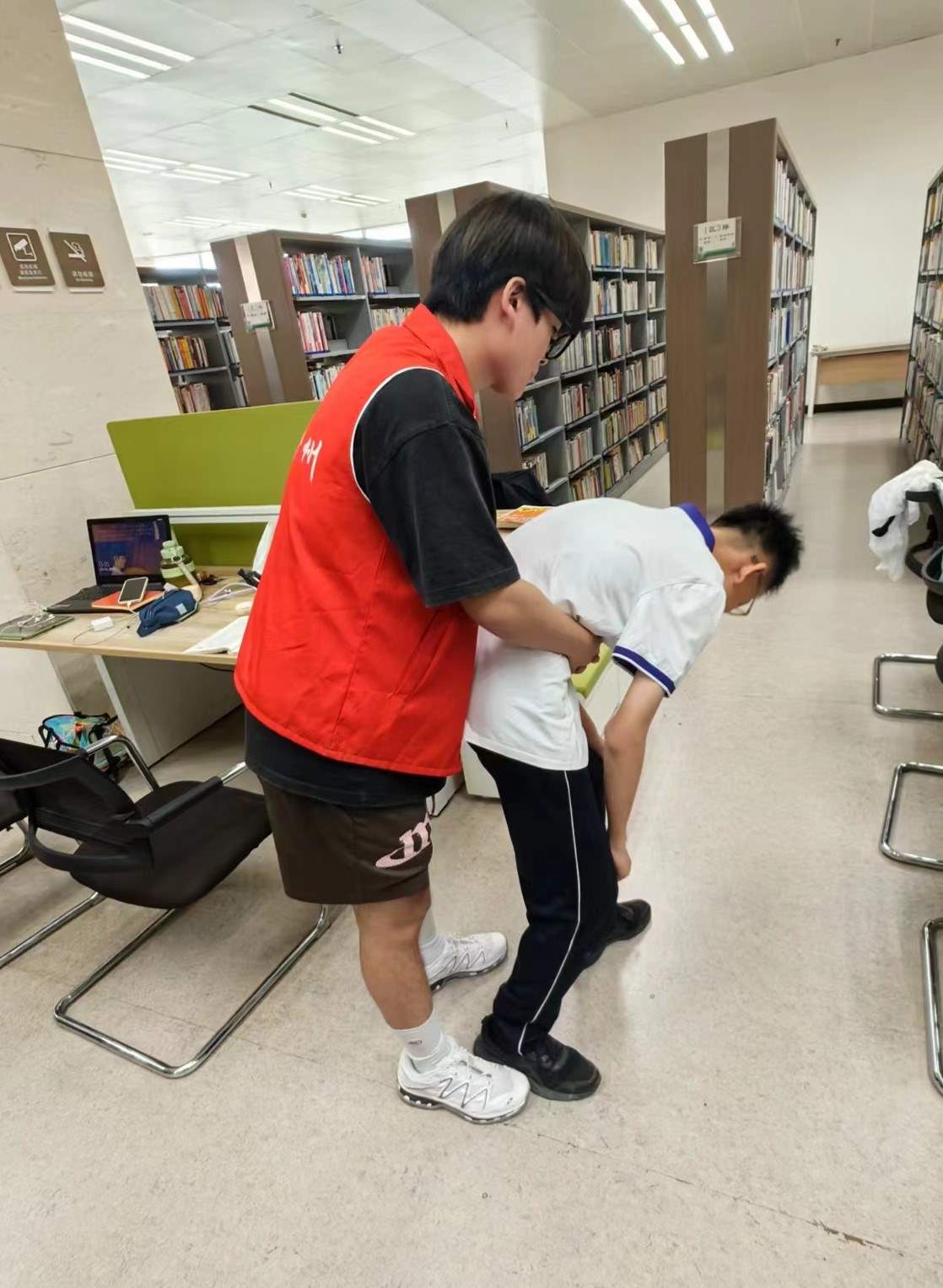 6月 28 日至7月4日,在隊長的帶領(lǐng)下,我組第一小隊前往鄭州市圖書館進行志愿服務(wù)工作和急救知識宣傳工作。隊員們按照圖書館要求規(guī)整分類書籍,協(xié)助工作人員維持秩序,分工明確、積極配合,迅速高效地完成工作,使圖書館的書籍干凈整齊、擺放正確。期間,他們還為讀者普及急救知識,詳細(xì)介紹心肺復(fù)蘇、海姆立克急救法等基本急救知識,進行實地演示和相互急救演練,并發(fā)放急救知識宣傳單,讓讀者對急救的作用和意義有了更深認(rèn)識,了解更多急救知識以應(yīng)對緊急情況,充分體現(xiàn)了我校同學(xué)做事認(rèn)真、從不懈怠的品質(zhì)。