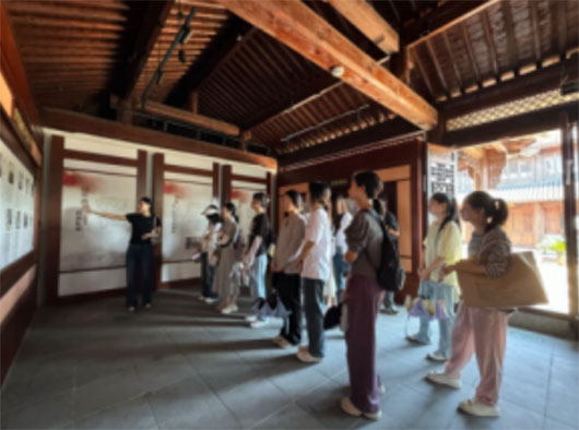 團隊首先參觀了南山村的盛氏宗祠,了解該村的歷史文化。在參訪過程中,講解員先全面介紹了村落概況,涵蓋教育、醫(yī)療、交通及文化設(shè)施等關(guān)鍵領(lǐng)域,之后帶領(lǐng)我們參觀了位于宗祠內(nèi)的黃山書屋。在參觀的過程中,講解員為調(diào)查團具體介紹了盛氏家族的歷史和南山村的鄉(xiāng)賢隊伍建設(shè),以此來加深團隊對盛氏家族文化與家風的理解。此環(huán)節(jié)不僅展示了盛氏家族的家訓家風,還介紹了村中人物如何踐行忠誠、孝順、友愛、和諧、重視教育、勤儉持家以及遵守道德規(guī)范等傳統(tǒng)美德。