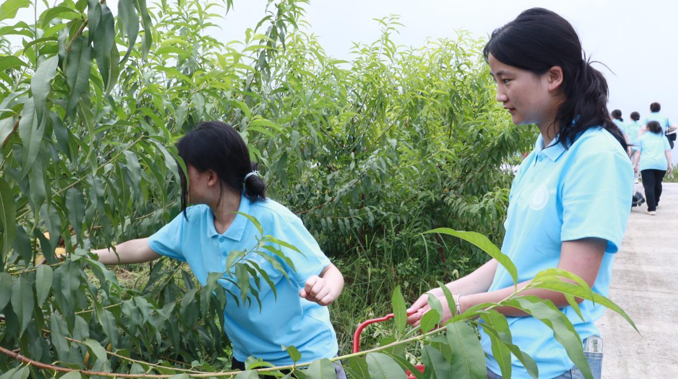 活動現場,志愿者們面對滿山掛滿果實的黃桃樹,紛紛展現出極大的熱情和積極性。他們分組行動,手持剪刀和籃筐,在歐大叔的悉心指導下,學習如何分辨黃桃的成熟度,掌握正確的采摘技巧。隨著活動的深入,志愿者們逐漸掌握了采摘的要領,收獲滿滿。
