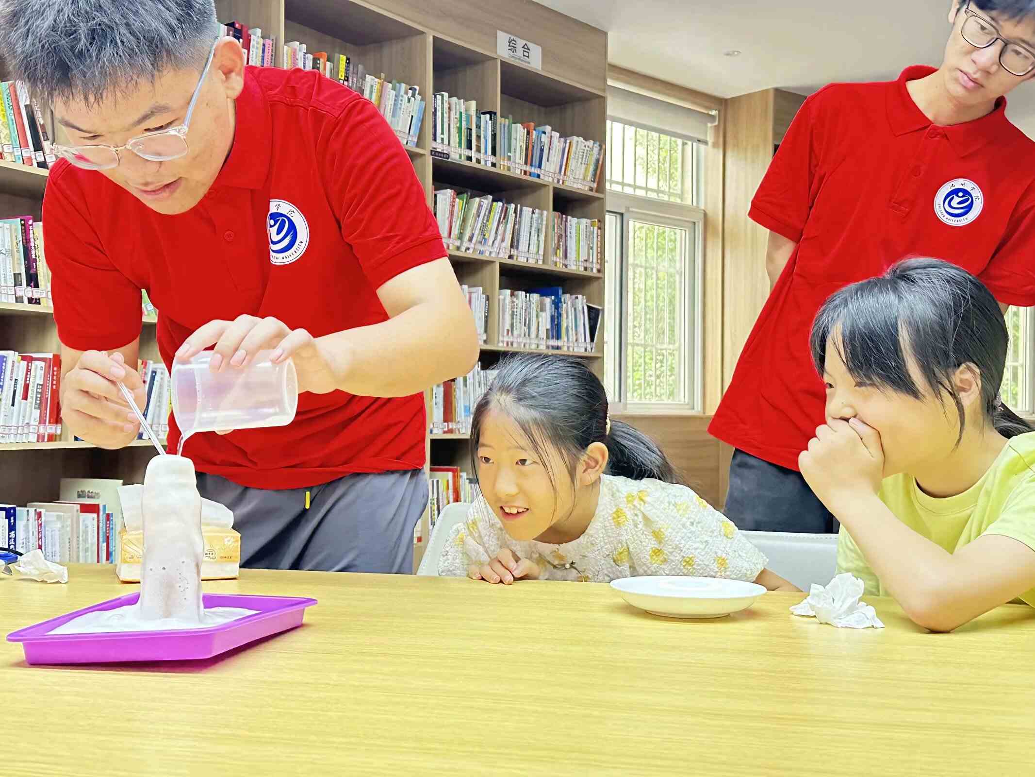 2024年7月14日,"池堂"科教實踐團積極響應國家號召,組織團隊深入月亮湖社區,精心策劃了一系列引人入勝的科普實驗活動,如“絢爛的彩虹雨”、“迷人的彩色噴泉”以及“神奇的自動吹氣球”等,旨在點燃孩子們對科學的熱情,拓寬他們的知識視野,為他們播撒科學的種子,助力其茁壯成長。