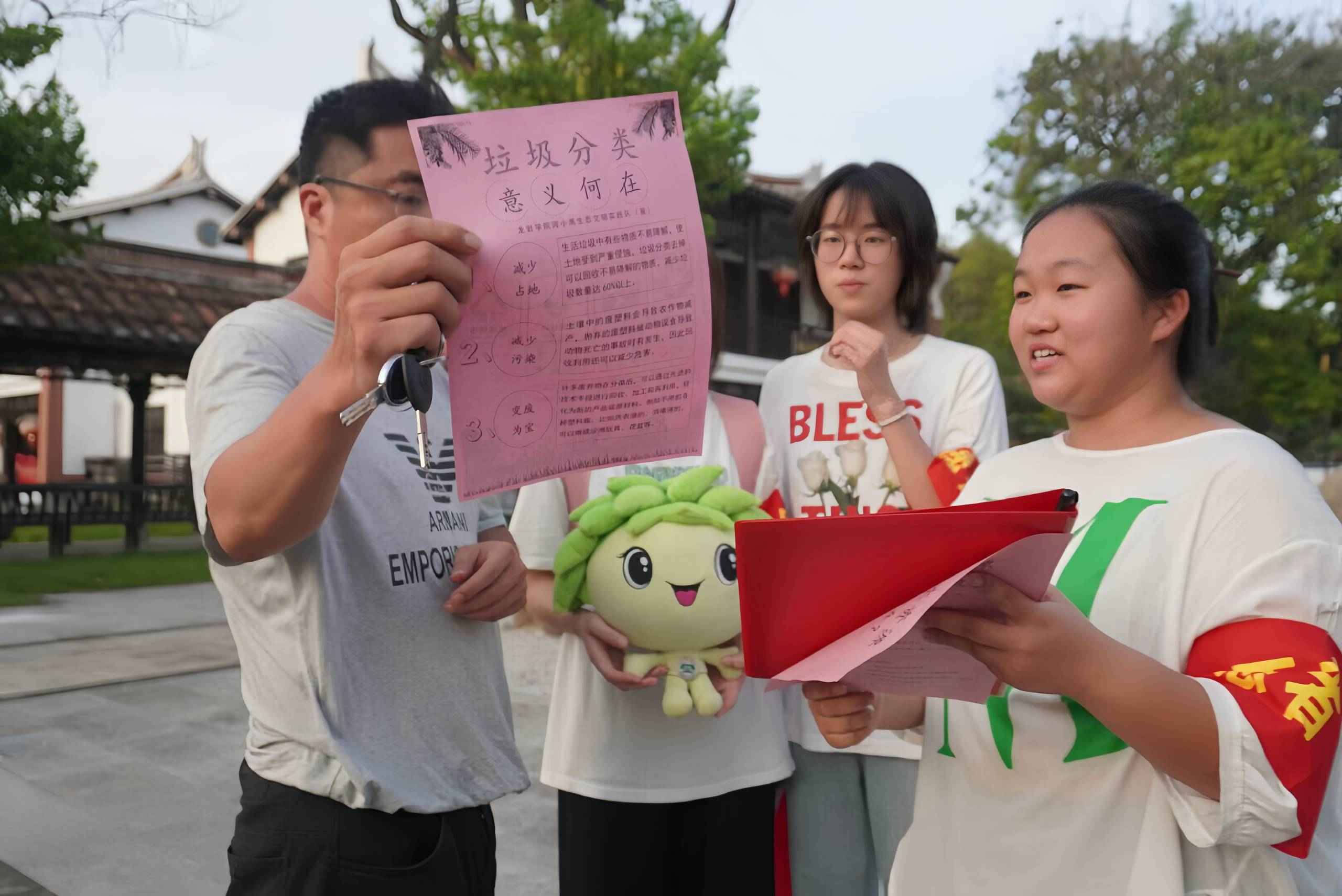 綠動生活,分類有道現場,實踐隊隊員向來往居民、駐街商戶派分發垃圾分類宣傳資料,宣傳垃圾分類知識,并詳細講解了垃圾分類的意義、如何處理有害垃圾等相關問題,讓居民們從自身做起,自覺堅持垃圾分類,使垃圾分類成為綠色生活的常態。
