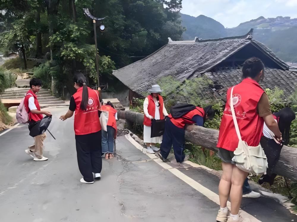 7月16日上午,團隊成員與雷山縣政府組織的志愿者們共同組成了志愿小隊前往羊排村,在村寨中拾撿垃圾、清除雜草,對村里街道等地方進行衛(wèi)生打掃,開展環(huán)境維護志愿服務,致力于維護羊排村干凈明亮的環(huán)境。經(jīng)過志愿者們的細心清理,羊排村的環(huán)境得到了有效的改善。