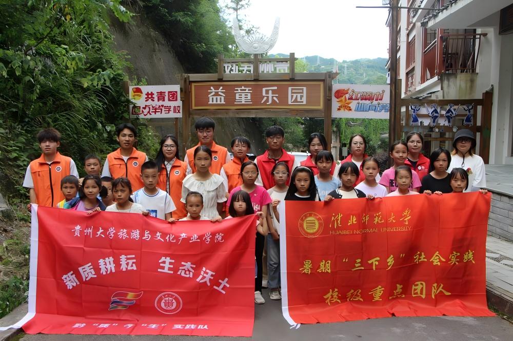 圖為實踐團隊與貴州大學支教團隊及學生合照
