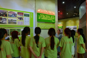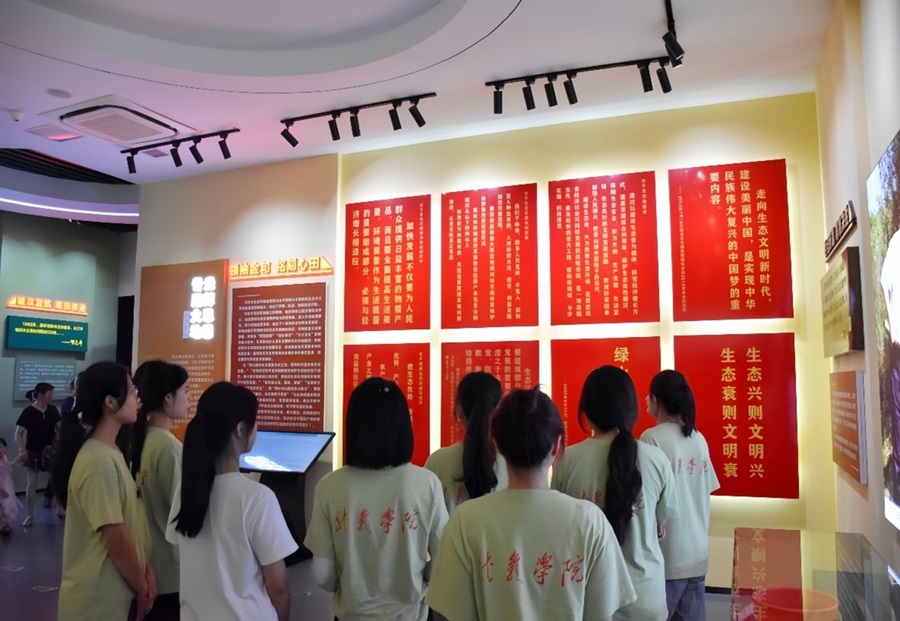 最后,實踐隊成員們參觀學習了解了長汀水土保持科技示范園,展廳結合多媒體高科技技術,打造身臨其境的效果,讓成員們沉浸其中,一同見證這片土地從“山光、水濁、田瘦、人窮”到“綠洲、生態、家園”的華麗轉身,聆聽長汀人民在習近平總書記的親自關心、指導、推動下,與荒山斗爭,將“火焰山”變成“花果山”的奮斗故事。