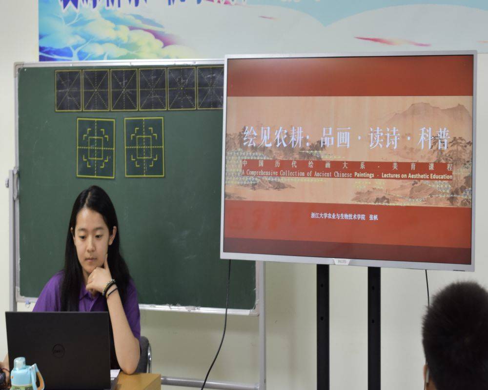 “美育之目的,在陶冶活潑敏銳之心靈,養成高尚純潔之人格。”下午時分,實踐團成員在課堂上為孩子們講解中國古代繪畫中的農耕文明。中華優秀傳統文化源遠流長、博大精深,是中華文明的智慧結晶,我國是農業大國,重農固本是安民之基、治國之要,因此要從中國古代繪畫中解譯農耕文明的密碼。中國歷代繪畫大系中農耕主題畫眾多,形象展示了中華農耕文化悠久的歷史傳承,團隊成員向孩子們介紹歷代農耕畫,通過觀畫品畫,發現中華文明賡續傳承的基因密碼。美育是一種教育,是對人類文明的傳承和發展的貢獻,是建設美好社會的重要力量,因此,堅定歷史自信和文化自信,就是要把馬克思主義同中華優秀傳統文化貫通起來,把這世界上唯一沒有中斷的文明繼續傳承下去。