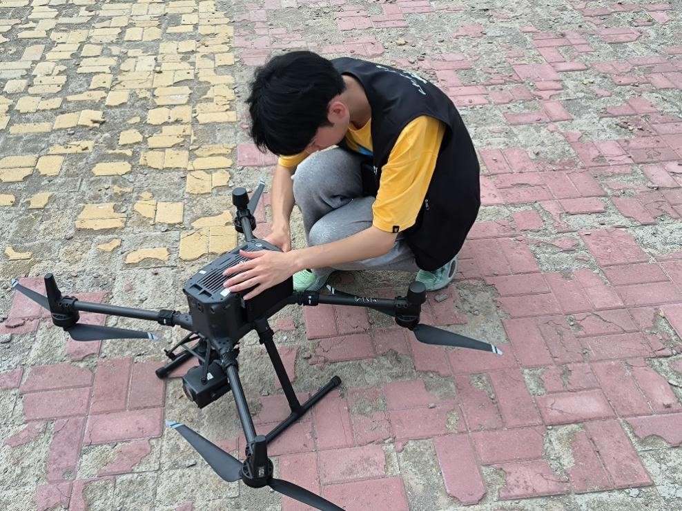 圖為實踐團成員運用無人機進行巡檢