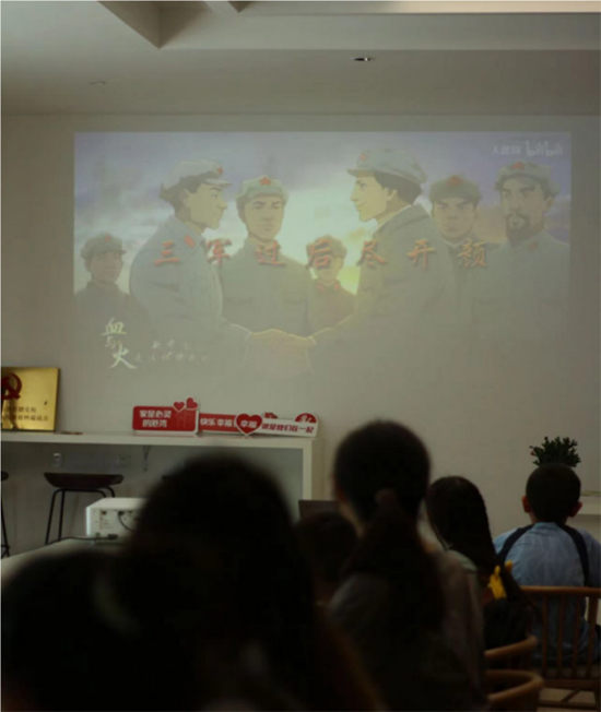 然后,實踐團還開展了紅色觀影活動,一起回顧廣大烈士們的無私奉獻和遠大抱負,感受星星之火的燎原之勢,讓紅色精神澆灌孩子們的成長。