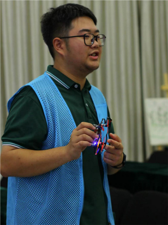 首先,開展了科創興國活動,向小朋友們展示了實踐團隊員們自己做出來的遙控小飛機,LED變換屏幕等,并加以解說,借此提高小朋友們對科創的興趣愛好,引導小朋友們樹立科技報國、永攀科學高峰的遠大理想;