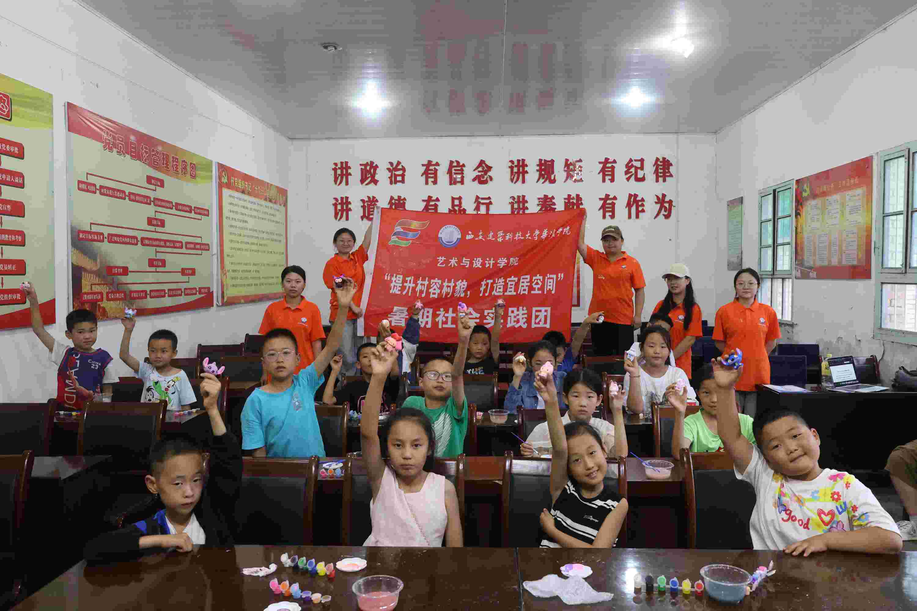 (二)藝術(shù)支教,點(diǎn)亮夢想 針對當(dāng)?shù)亓羰貎和瑢?shí)踐團(tuán)開設(shè)了豐富多彩的藝術(shù)支教課程,包括“我眼中的夏天”、“美麗的房子”繪畫以及石膏涂色等,激發(fā)了孩子們對藝術(shù)的興趣與創(chuàng)造力。孩子們的作品被精心挑選并張貼在鄉(xiāng)村墻面上,成為鄉(xiāng)村一道亮麗的風(fēng)景線,同時(shí)也為孩子們搭建了展示自我、實(shí)現(xiàn)夢想的舞臺。