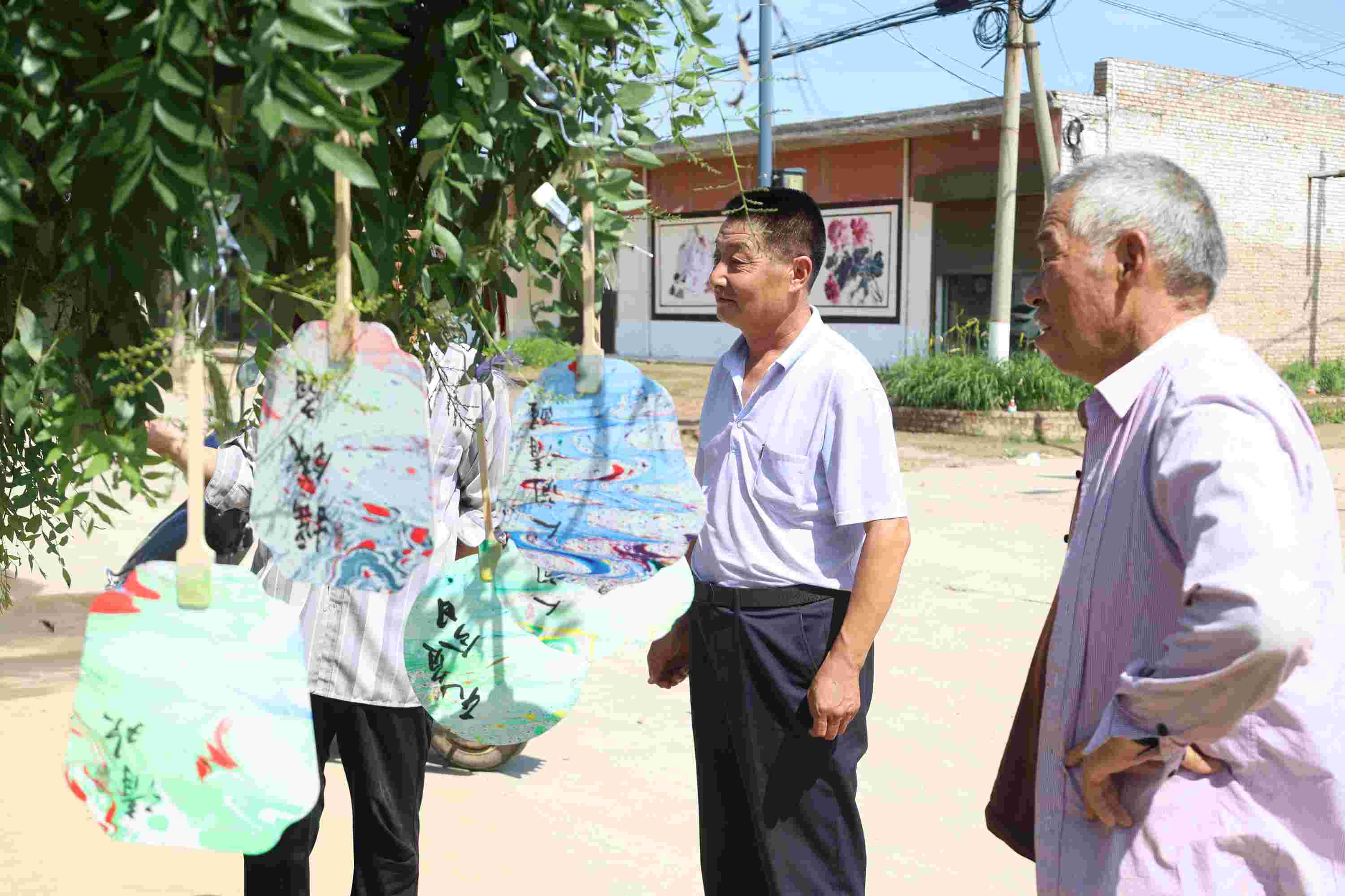 (三)非遺傳承,匠心獨(dú)運(yùn) 在非遺文化的傳承與創(chuàng)新上,實(shí)踐團(tuán)也下足了功夫。他們結(jié)合自己專業(yè)知識,帶領(lǐng)村民學(xué)習(xí)制作非遺漆扇,將傳統(tǒng)技藝與現(xiàn)代審美相結(jié)合,制作出一把把精美絕倫的漆扇。這些漆扇不僅裝飾了村莊,更成為了雷牙村的一張文化名片,展現(xiàn)了鄉(xiāng)村文化的深厚底蘊(yùn)與獨(dú)特魅力。
