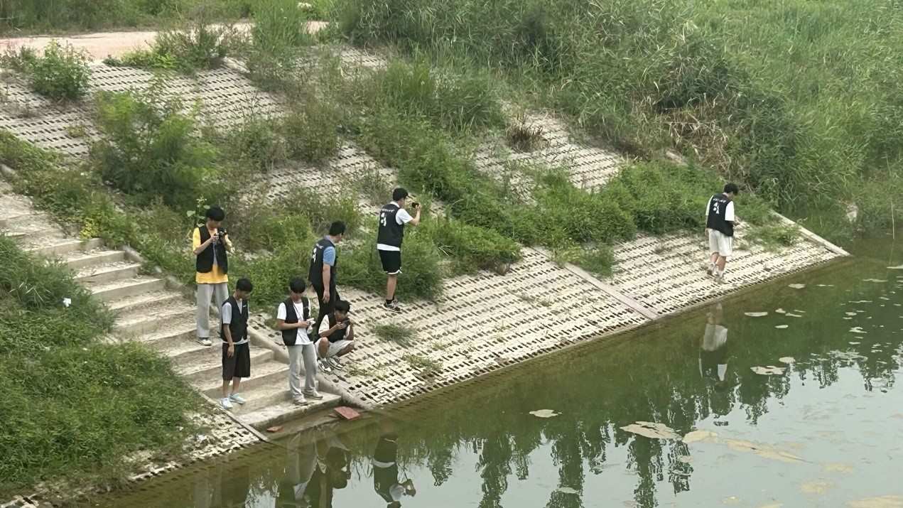 在隊長的帶領(lǐng)下,實踐團成員分組對村內(nèi)河流分段抽樣,利用專業(yè)儀器檢測水體結(jié)構(gòu),同時調(diào)查沿岸植被的生長情況和土壤情況,據(jù)此綜合分析得出水質(zhì)總體情況。除此之外,實踐團還利用無人機溯源村內(nèi)河流的源頭,希望根據(jù)沿線水體活動制定有效的水質(zhì)改善方案。