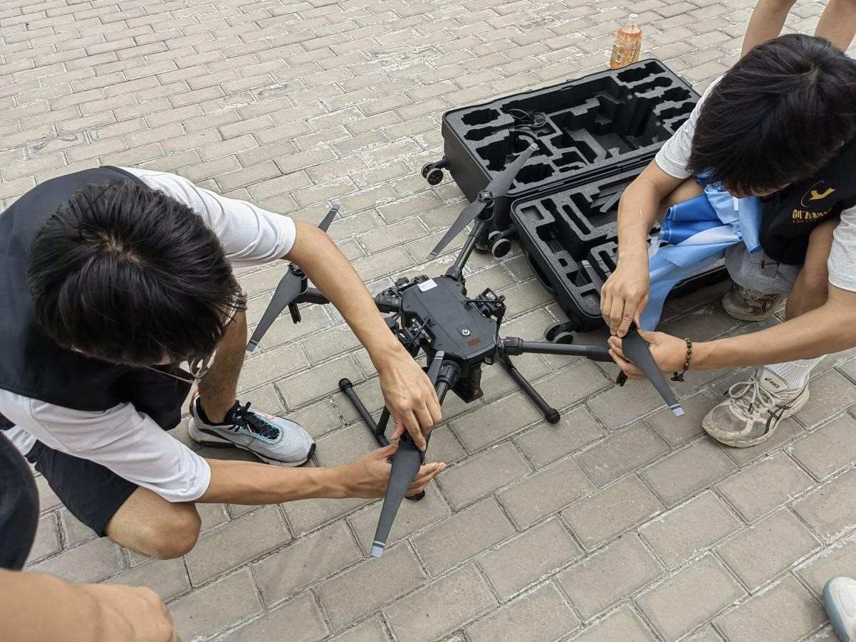 在隊長朱志毅的帶領下,實踐團一行人開始了檢測。團隊成員首先在實驗區域設置采樣點, 采集水樣, 經實驗室檢測得出實驗所需參數值。然后利用無人機搭載多光譜傳感器獲取研究區域的多光譜圖像,借助無人機系統搭載的多光譜成像儀生成多光譜圖像,直觀全面地監測地表水環境質量狀況,提供水質富營養化、水華、水體透明度、懸浮物排污口污染狀況等信息。同時后臺可實時拼接無人機影像,形成直觀的正射圖,便于發現異常情況和排污。然后,實踐團成員對所獲取的圖像進行輻射校正處理得到光譜反射率數據.再將獲取的區域光譜數據與水質要素(TP、SS、TUB)實測數據進行Pearson相關性分析, 選擇相關性達標的參數通過線性函數、指數函數、多項式函數及冪函數的擬合, 構建反演模型, 使模型可以將獲取的拍攝圖片轉換成水質要素參數值(TP、SS、TUB).最后根據獲取的多光譜圖像及建立的反演模型, 制作研究區域的水質要素數值分圖。