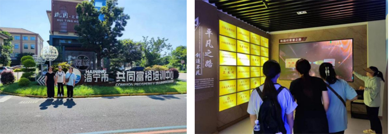 海寧桃園村愛國主義基地:鄉村振興,共富典范 另一支小分隊則前往了浙江省海寧市的桃園村,這里是海寧市紅色教育精品路線中的重要一環,也是新時代鄉村振興與愛國主義教育的典范。桃園村以“黨建統領共富典范”為目標,充分挖掘村級紅色文化資源,打造了一條集趣味性、個人參與度與紅色教育于一體的研學線路。