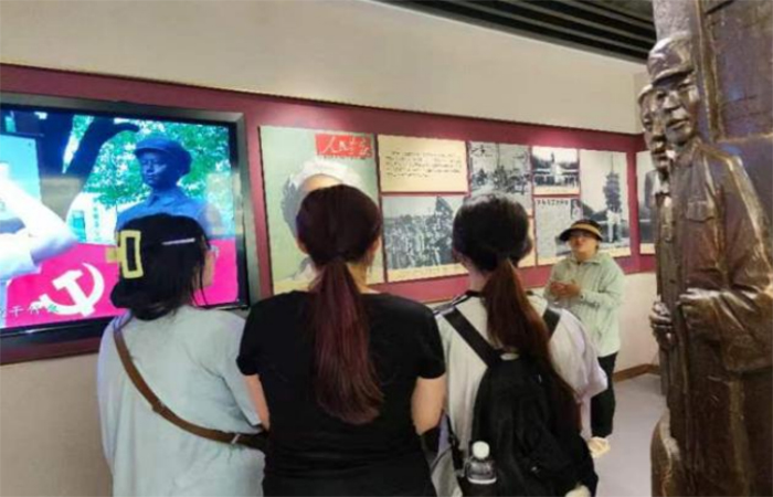 在紀念館內,隊員們被墻上掛著的烈士照片和事跡介紹深深吸引。他們了解到,雨花臺曾是國民黨反動派殺害革命斗士的刑場,數萬名共產黨人和愛國志士為了人民的解放事業在此獻出了寶貴的生命。尤其是那些年輕的面孔,他們大多風華正茂,卻為了理想與信仰,甘灑熱血,將生命熔鑄到了扶危救國的歷史使命中。在參觀過程中,成員們不僅親身感受了革命先烈們的英勇事跡,還積極向路人詢問他們對這段歷史的了解,共同回顧了那段光輝的革命歲月。其中一位年輕的路人表示到:“雖然我沒有親身經歷過那段歷史,但通過學習和參觀,我深刻感受到了革命先烈們的偉大與崇高。他們用自己的青春和熱血換來了我們今天的幸福生活,我們應該倍加珍惜。”