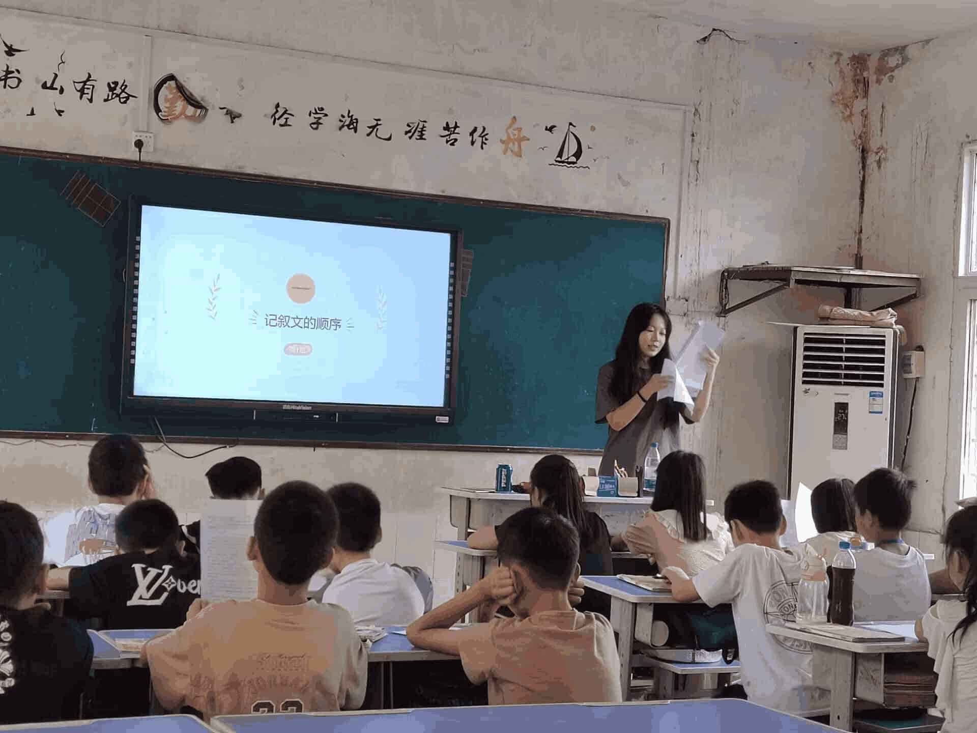 陳瑞同學深知,語文不僅是文字的堆砌,更是文化的傳承、情感的交流和思想的碰撞。在偏遠的支教點,她面對著一張張渴望知識的臉龐,心中充滿了無限的責任感和使命感。她明白,自己支教期間的每一堂課,都有可能成為孩子們打開世界之門的鑰匙,成為他們人生路上的一個小小的轉折點。因此,在語文課的講臺上,陳瑞傾注了全部的熱情與智慧。她跳脫出死磕課本內容的思維,不僅僅滿足于教授孩子們識字、閱讀、寫作等基本技能,更致力于引導他們深入文本,感受語言的魅力,理解文化的內涵。