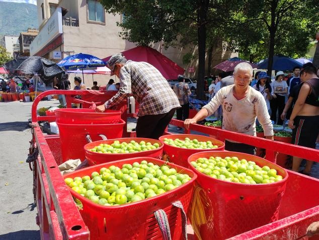 當(dāng)日上午11點,實踐團(tuán)到達(dá)汶川縣李子批發(fā)市場,在與農(nóng)戶的交談中了解當(dāng)?shù)乩钇贩N以及李果市場行情。