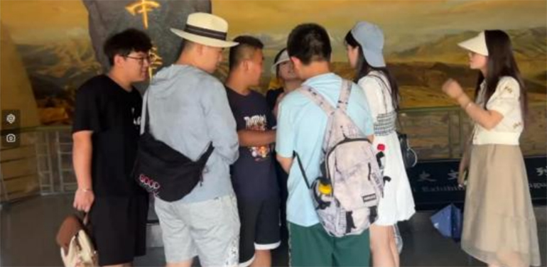 (圖為施樂老師為實(shí)踐團(tuán)講解嘉峪關(guān)歷史文化/張倩倩 攝)