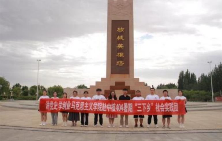 (圖為實(shí)踐團(tuán)在核城英雄塔合影留念/張倩倩、李梅梅 攝)