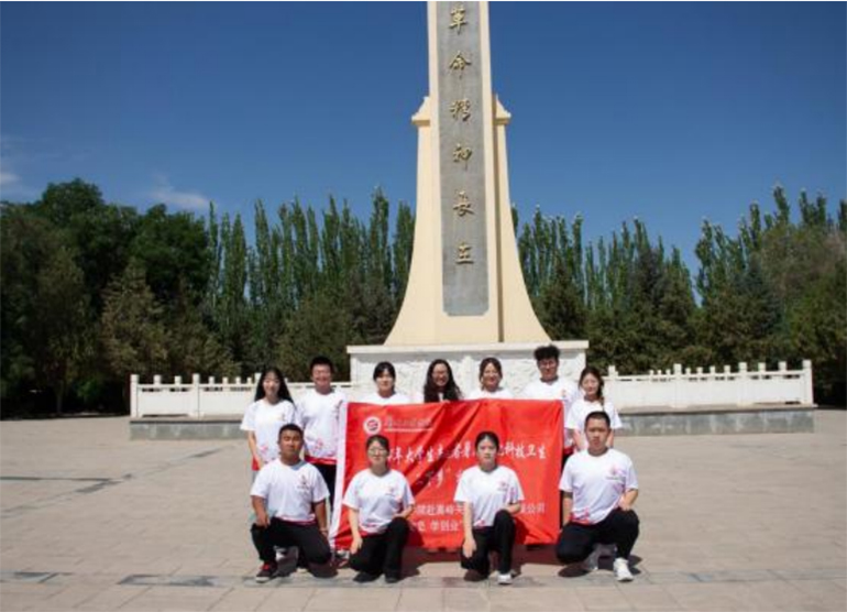 (圖為實(shí)踐團(tuán)在酒泉烈士陵園合影留念/張倩倩、李梅梅 攝)