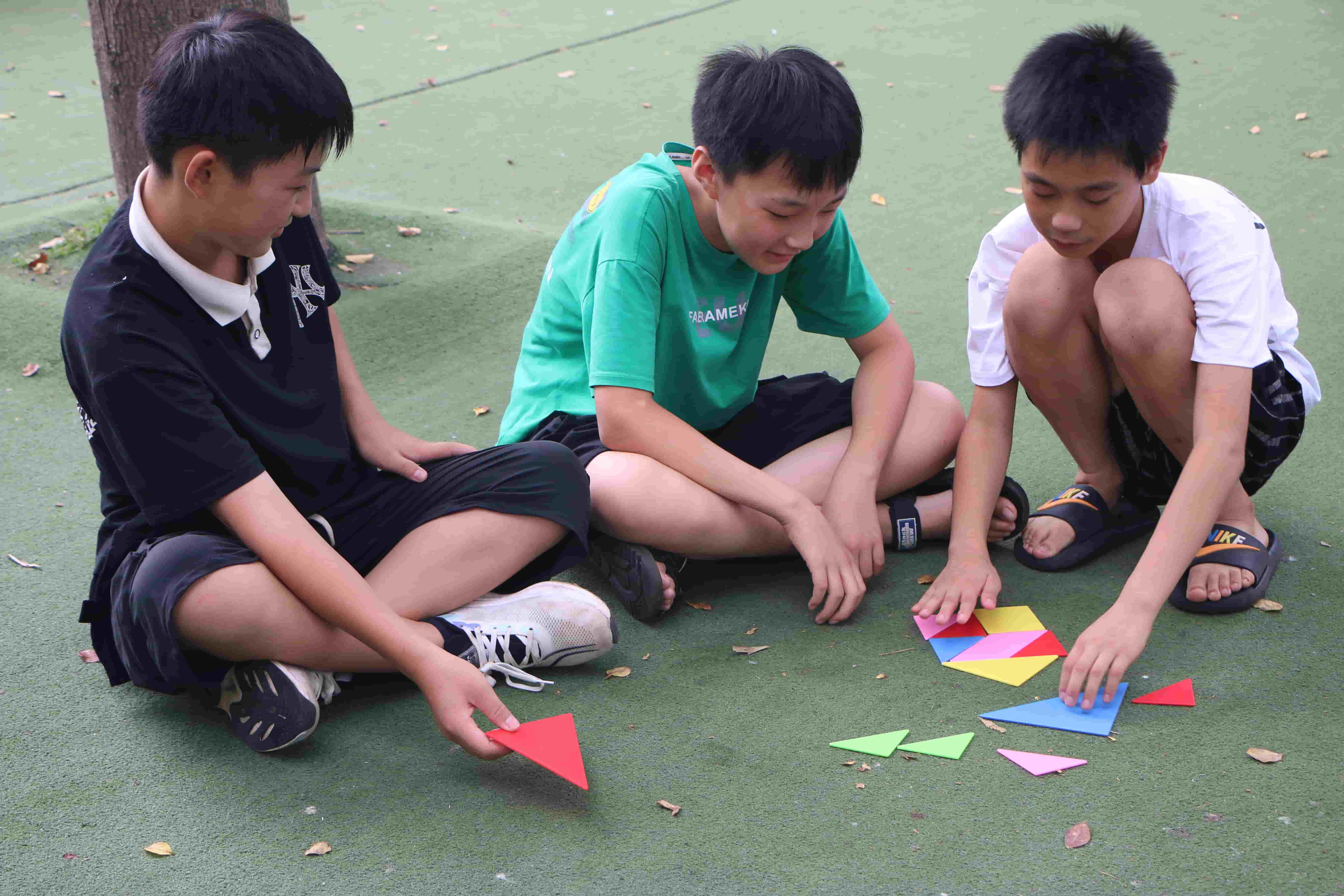在操場的歡騰角落,三五個同學圍成一個小圈,隨著輕快的旋律盡情舞動,他們臉上的笑容燦爛無比,仿佛春日里溫暖的陽光。不遠處,幾名同學正聚精會神地拼接七巧板,那些色彩斑斕的拼圖在他們的手中逐漸成形,仿佛構建著孩子們的智慧與夢想。而在另一個角落,一群孩子正沉浸在捉迷藏的游戲中,負責尋找的同學緊閉雙眼,認真地數著數字,而躲藏的孩子們則機敏地尋找著藏身之所,或是樹后,或是花壇旁,空氣中彌漫著緊張與期待。與此同時,幾位同學在一片開闊地上放起了風箏,他們手中的線軸輕輕轉動,風箏在藍天中翱翔,優雅的飛舞吸引了周圍的同學紛紛抬頭觀賞,整個操場成為了歡樂與活力的海洋。