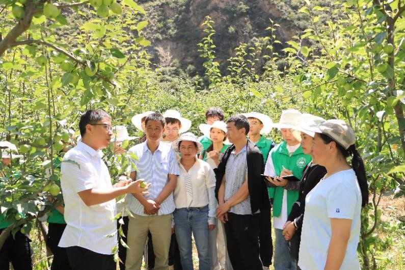 當日下午,實踐團在種植大戶李洪的引導下來到了雪山香梨園。李洪介紹,此時正值雪山香梨生長迅速膨大期,十月初將迎來豐收季,這也是近三年收成最好的一年。問及原因時,李洪說道:“近三年松潘連續的冰雹導致梨樹未能結果,果園損失嚴重。”今年,在實踐團指導教師張猛的指導和農戶們的精心管護下,梨樹恢復了樹勢,再次大面積掛果。據估計,今年合作社梨果總產量將達到200噸,批發價格穩定在8-10元/千克,可為果農帶來可觀的經濟收益。
