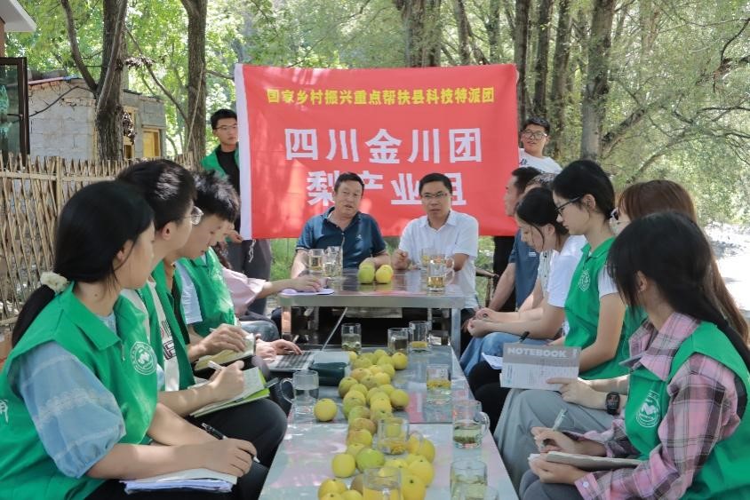 下午1點,實踐團來到咯爾鄉,與當地技術人員進行了深入交流,詳細了解了金川雪梨產業發展歷程。金川雪梨已有300多年的栽培歷史,金川縣獨特的自然氣候造就了雪梨的高品質和好口感,雪梨也逐漸成為當地百姓的主要經濟來源。