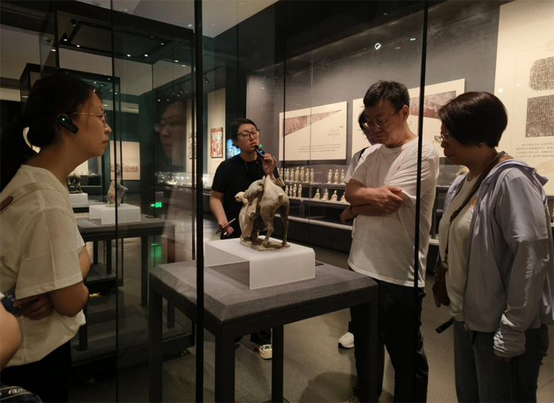 圖為實踐團成員在北朝考古博物館聽講解人員介紹鎮館之寶——駱駝陶俑