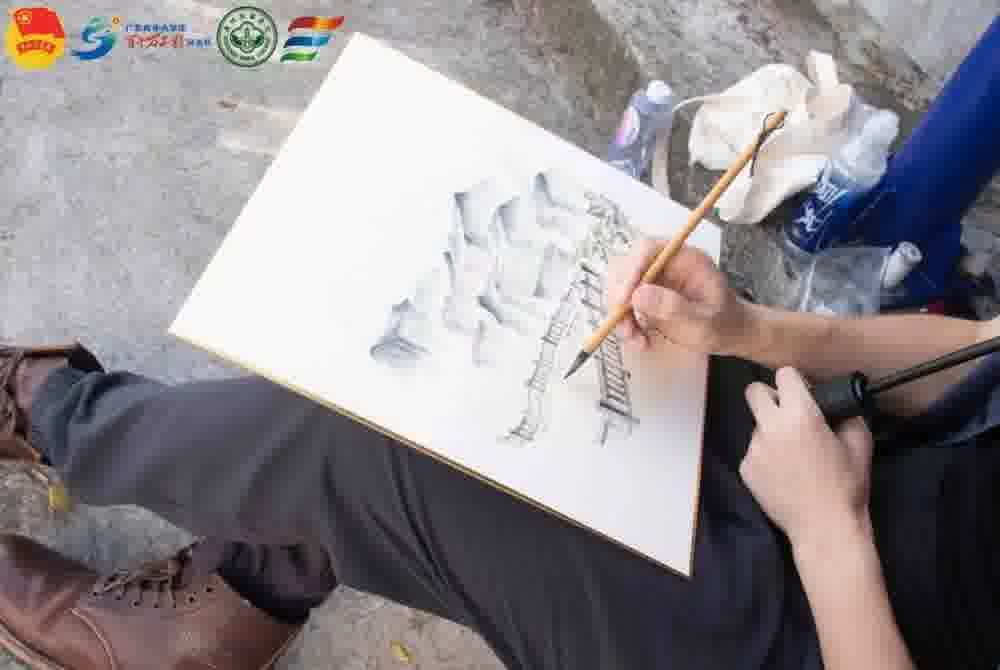 藝術(shù)家在九溪澳村進(jìn)行水彩畫寫生(攝影 蔡欣鈿 肖雨晨)