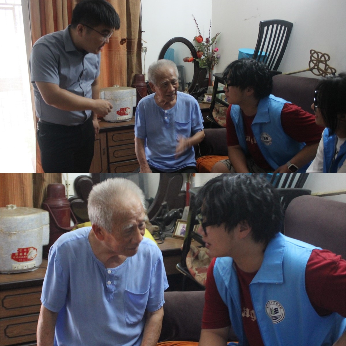 情暖八一,致敬老兵8月1日下午,“常青樹”實踐團攜帶著慰問品前往張公山街道開展慰問老兵活動,他們的到來,為老兵們平靜的生活帶來了歡聲笑語。實踐團成員不僅為抗戰(zhàn)老兵送上了精心準備的慰問品細心聆聽他們講述往昔的軍旅生活和對國家建設的貢獻。這些溫馨的場景,讓在場的每一個人都感受到了跨越時代的家國情懷。那一枚枚勛章,一件件收藏,是他們?nèi)松目s影,更是紅色的記憶。在交談中,董中禮爺爺回憶起自己的軍旅生涯,他19歲加入中國人民解放軍,隨后義無反顧加入抗美援朝志愿軍,并作為通訊兵奔波在最危險的前線;胡守安、徐澤中爺爺也是在風華正茂的年紀參軍,在軍隊中負責運輸兵器以及船只,他們的話語中透露出對祖國的無限忠誠和對和平生活的珍惜。