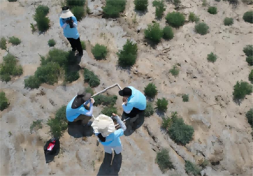 在實踐過程中,團隊成員們不畏酷暑,深入田間地頭,仔細觀察和記錄各類牧草的生長狀況,采集樣本以進行進一步的分析研究。同時針對鹽堿地分布情況,團隊運用無人機進行地理信息技術和實地勘察相結合的方法,粗略的了解了鹽堿地分布情況,為后續的改良工作提供了數據支持。
