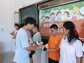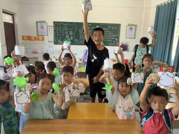 儀式當天,現場氣氛熱烈而溫馨。學生們用他們稚嫩的小手,相互贈送著自己精心準備的禮物,每一張笑臉都洋溢著純真的喜悅和對友情的珍視。而志愿者們也在這個特別的時刻,將滿載著愛與祝福的禮物一一送到學生們的手中。互贈禮物后志愿者和學生們一起通過擊鼓傳花、你劃我猜、傳聲筒等趣味小游戲,以及集體合唱、show time舞蹈展示和朗誦等時光重溫環節。稚嫩的童聲如同夏日的清泉,滋潤了每個人的心田,展現了無限的可能與希望。志愿者們與學生們攜手制作指紋畫作、寫寄語留念時,氣氛達到高潮。他們分享支教過程中的點點滴滴,有歡笑、有淚水、有挑戰、有收獲。崇陽星光志愿服務隊的成員們也在這期間與學生們共同回顧起這段難忘的時光。這些回憶如同指紋一般,深深地烙印在每個人的心中,成為他們人生中寶貴的財富。