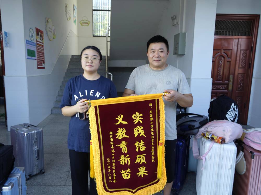 一面錦旗,一份信任,一份肯定。在志愿服務(wù)結(jié)束之際,崇陽(yáng)縣洞泉村村委會(huì)聯(lián)合洞泉小學(xué)為武昌理工學(xué)院崇陽(yáng)星光志愿服務(wù)隊(duì)贈(zèng)送題為“實(shí)踐結(jié)碩果,義教育新苗”的錦旗,真誠(chéng)感謝崇陽(yáng)星光志愿服務(wù)隊(duì)大學(xué)生志愿者在暑期社會(huì)實(shí)踐活動(dòng)中的辛勤付出,為他們無(wú)私奉獻(xiàn)的精神表示崇高的敬意。崇陽(yáng)星光志愿服務(wù)隊(duì)隊(duì)長(zhǎng)黃范濤代表全體隊(duì)員接受錦旗。