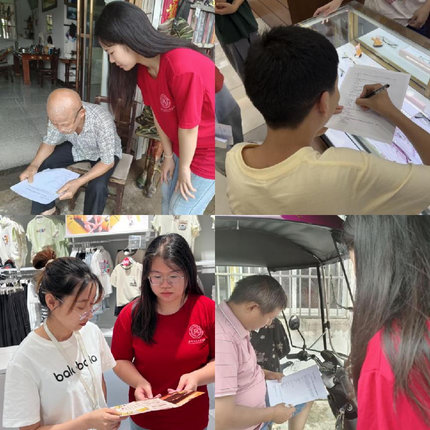 (圖為實踐團成員發放宣傳冊及開展問卷調查)