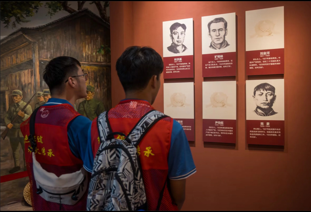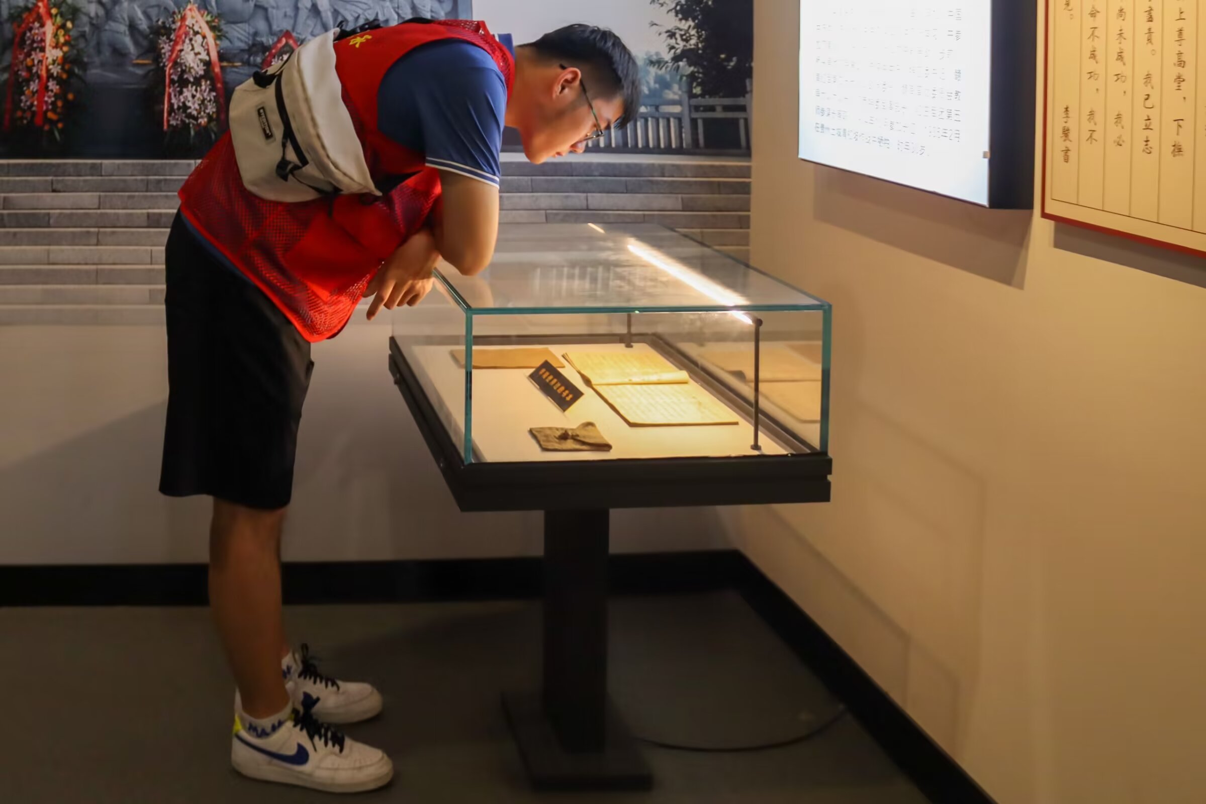 步入革命烈士紀(jì)念館,三幅巨型浮雕映入眼簾,生動(dòng)展現(xiàn)了中央紅軍主力部隊(duì)向于都地域換防集結(jié)、蘇區(qū)人民牽手惜別以及紅軍革命為民的動(dòng)人場(chǎng)景,隊(duì)員們?cè)诩o(jì)念館烈士浮雕前肅立,向紅軍戰(zhàn)士們致以最崇高的敬意。從“中國(guó)共產(chǎn)黨的創(chuàng)立與大革命初期”、“土地革命戰(zhàn)爭(zhēng)時(shí)期”到“抗日戰(zhàn)爭(zhēng)和解放戰(zhàn)爭(zhēng)時(shí)期”、“社會(huì)主義革命建設(shè)和改革時(shí)期”與“新長(zhǎng)征,再出發(fā)”,隊(duì)員們?cè)敿?xì)了解了于都縣8.6萬(wàn)名紅軍戰(zhàn)士、16356名革命烈士可歌可泣的光榮事跡。逐一走過(guò)展覽廳,烈士們的事跡和英勇行為仿佛在耳邊輕語(yǔ),展柜里一件件珍貴文物、一段段傳奇故事,都把隊(duì)員們帶回到了那段浴血奮戰(zhàn)的光輝歲月。烈士們用堅(jiān)定的信念和無(wú)畏的勇氣書寫奮斗的篇章,也讓隊(duì)員們更覺重任在肩,時(shí)刻牢記新時(shí)代青年的使命與擔(dān)當(dāng)。