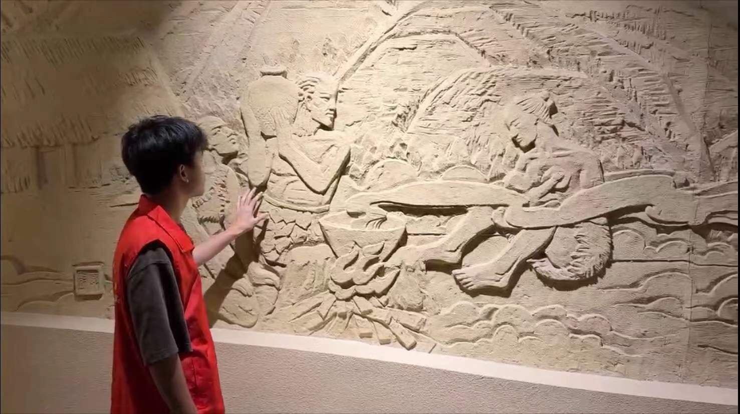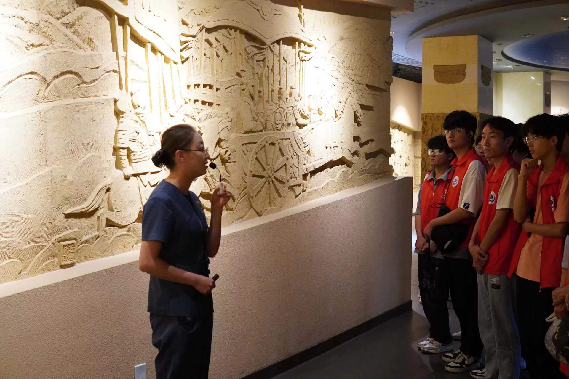 圖為實踐隊員觀看天水市博物館歷史浮雕墻,通訊員 覃德潔 攝