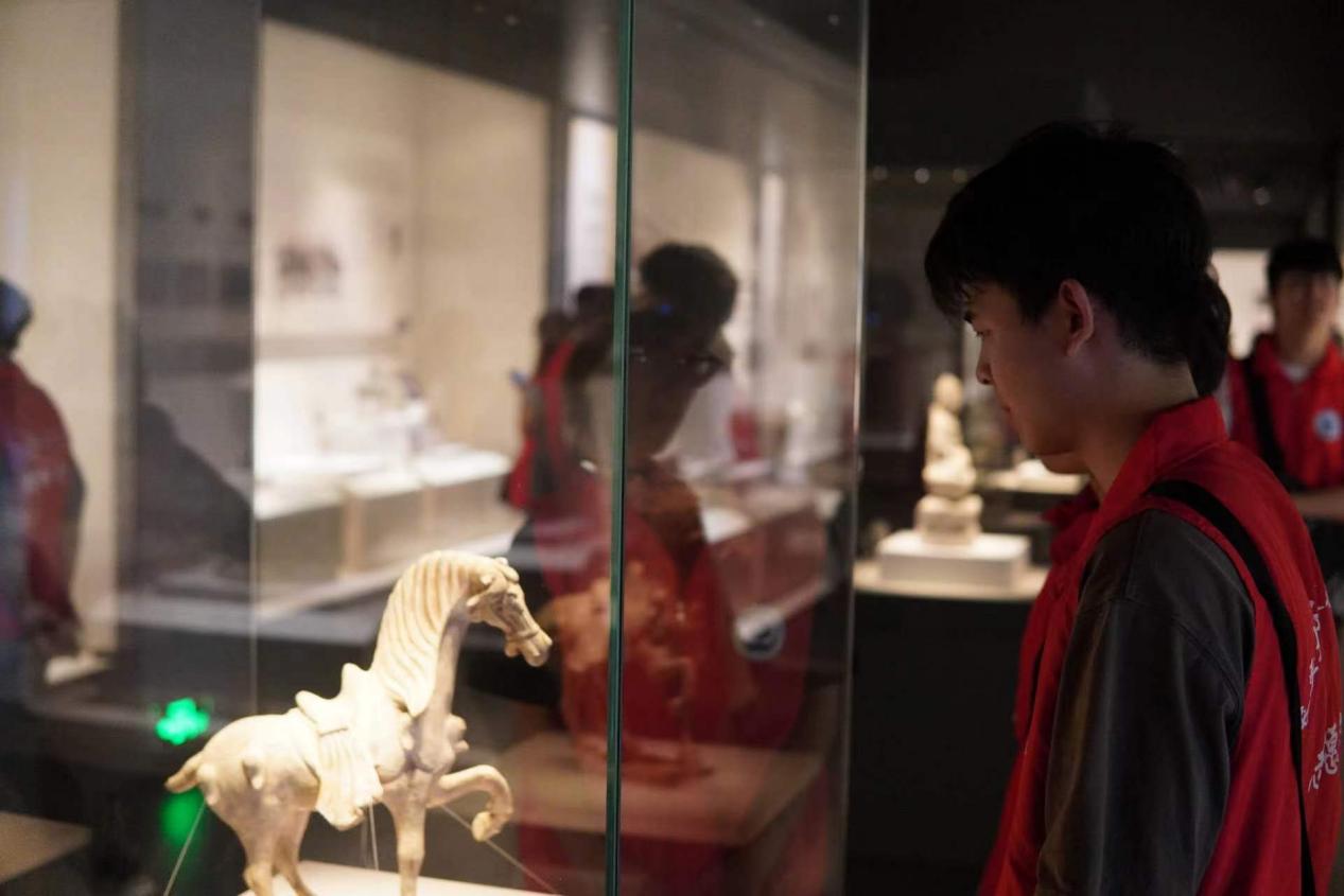 圖為實踐隊員觀看唐舞馬陶俑形態的畫面,通訊員 覃德潔 攝