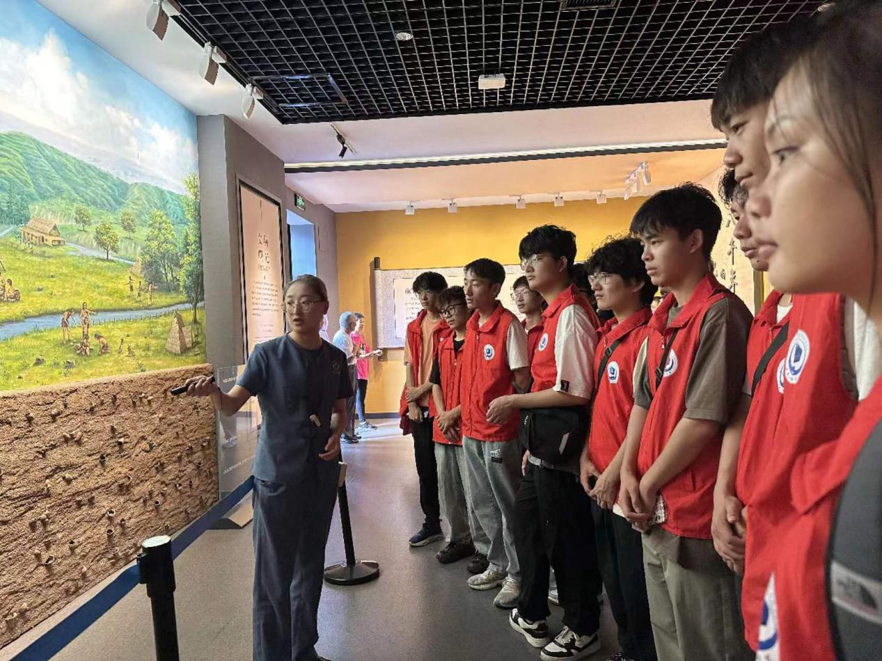 圖為講解員為實踐隊員講解古代居民的生活狀況,通訊員 喬心怡 攝