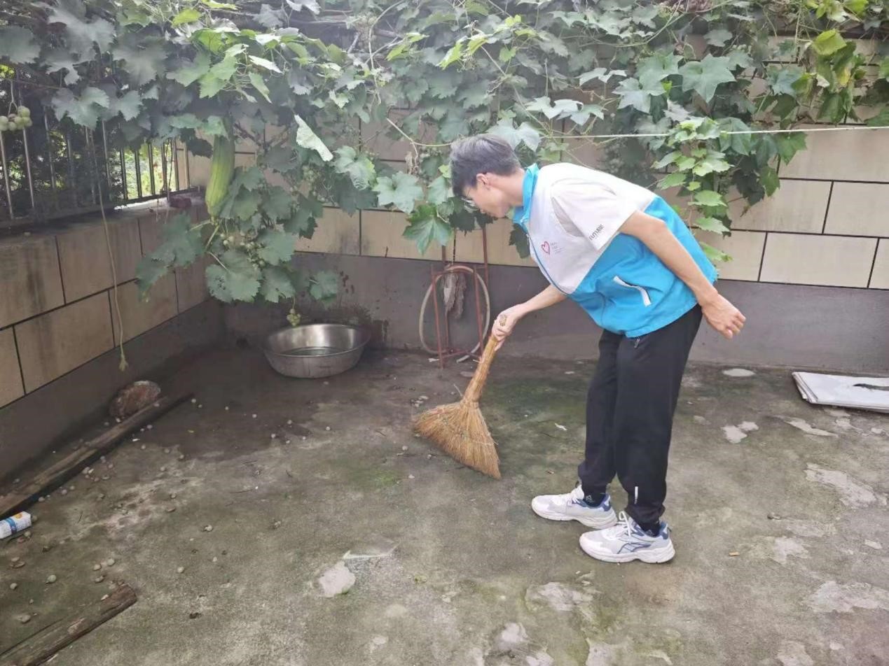 圖為志愿者為老年人打掃衛生。 劉虎 供圖。