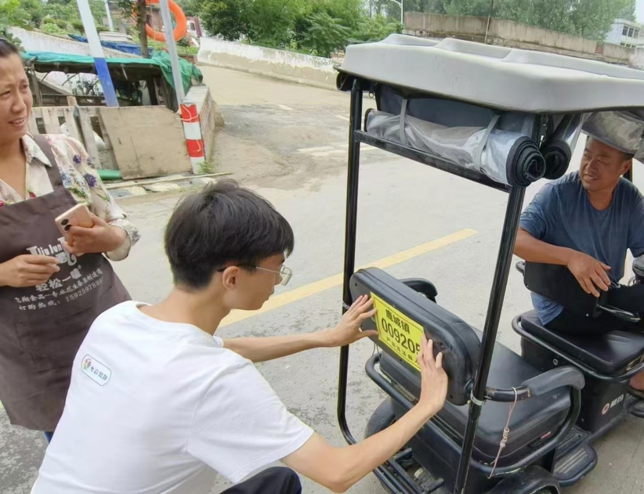 在車牌貼附的過程中,學生們分工合作,有條不紊地進行操作。一部分學生負責將車牌粘貼到車輛上,確保車牌的貼附牢固且符合規定的位置;另一部分學生則負責檢查車牌的貼附效果,并與車主核對相關信息,確保無誤。在貼車牌的過程中,村民們表現出了極大的積極性和配合度。許多車主自覺地將三輪車開到指定地點,等待學生們的操作。一位車主表示:“之前一直沒來得及去辦理車牌,今天學生們的到來真是幫了大忙,感謝他們的熱心幫助。”