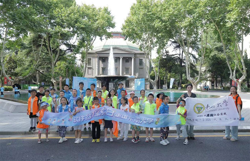 8月9日下午,團隊成員2人負責接待雨花臺區“軟件谷探索日”的小朋友們參觀東南大學。潘入墨作為梅庵至善講解團的成員,曾多次承擔帶領參觀和講解梅庵與團二大歷史的任務,在她的熟練而生動的講解下,孩子們對校史館、六朝松、梅庵和團二大以及東南大學的歷史都有了一定的了解,也把紅色印記烙在每個參觀者心中。