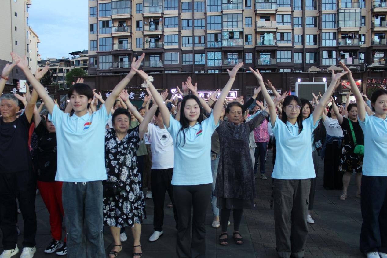 為了保護和傳承這一珍貴的文化遺產,重慶外語外事學院“挺膺擔當,青春逐夢”習近平新時代中國特色社會主義思想宣講團走進石柱縣參與獨具特色的土家萬人擺手舞,感受充滿藝術氣息的土家文化。經過交涉,表演團隊負責人帶領宣講團成員來到舞臺中心區域,近距離感受淳樸、真實的土家非遺文化。