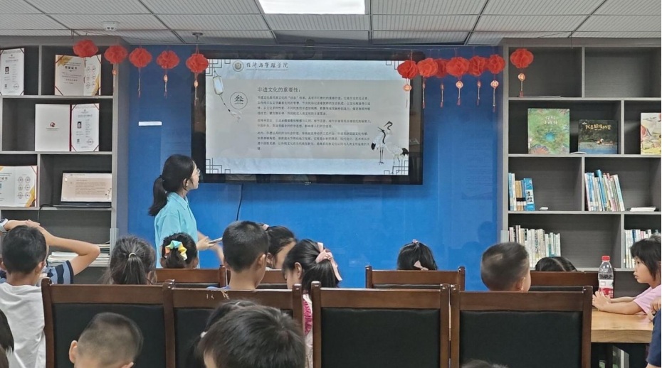 非遺文化體驗環節亮點紛呈。志愿者們圍繞剪紙、中國結、戲曲臉譜等非遺項目,運用多媒體手段深入淺出地講解其歷史淵源和文化內涵。適逢小暑時節,活動特別設置“二十四節氣之小暑專題活動”,通過講解傳統習俗、分享養生知識、教授傳統食品制作技藝,讓孩子們在互動體驗中感悟節氣文化的智慧。漆扇制作環節更是讓孩子們在實踐中體會非遺技藝的精妙。
