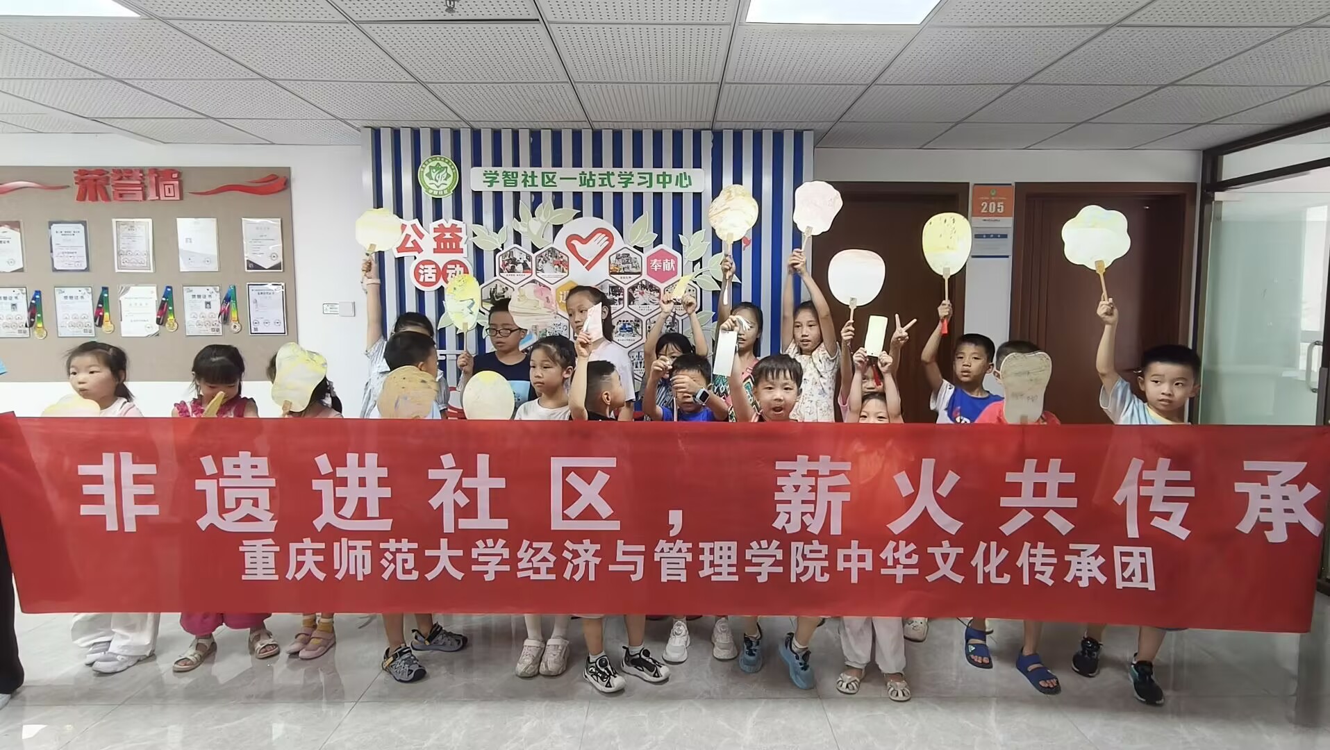 為深入貫徹習近平總書記關于文化自信的重要指示精神,推進中華優秀傳統文化創造性轉化、創新性發展,重慶師范大學經濟與管理學院中華文化傳承團于2025年7月5日—9日深入重慶市沙坪壩區學智社區、大成湖社區及建新村,開展“非遺進社區·薪火共傳承”文化傳承系列實踐活動,通過創新“三位一體”文化育人模式,活動為超過五十名社區兒童帶來沉浸式傳統文化體驗。