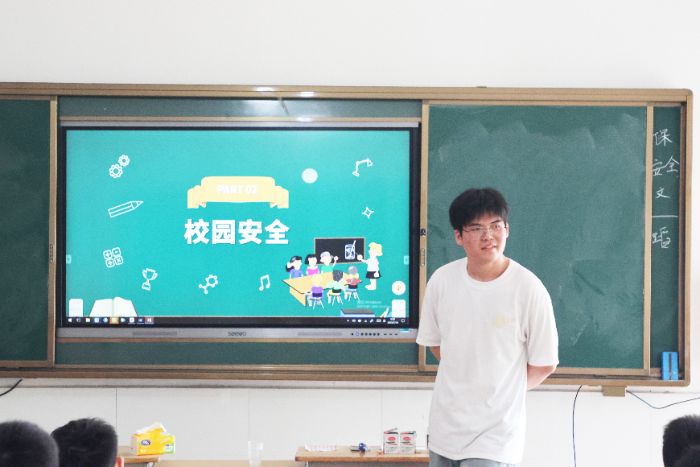 團(tuán)隊(duì)成員盧子浩講解校園安全內(nèi)容