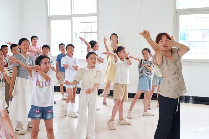 團(tuán)隊(duì)成員姚丹教學(xué)生跳民族舞