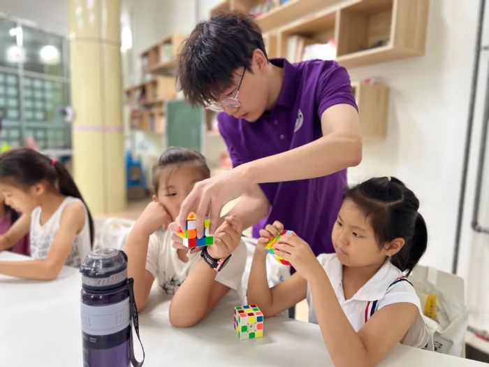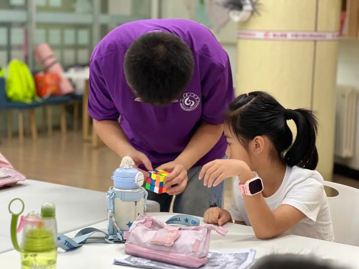 為充實(shí)中小學(xué)生暑期時光,助力他們養(yǎng)成優(yōu)良學(xué)習(xí)興趣,拓寬知識視野,7月15日,山東理工大學(xué)“循夢而行”暑期社會實(shí)踐團(tuán)前往齊悅國際社區(qū)黨群服務(wù)中心開展“齊小團(tuán)”暑期托管課堂。此次課堂的主題為“魔方的魅力”,同時邀請到山東理工大學(xué)魔方協(xié)會與實(shí)踐團(tuán)一起完成此次課程的講解。