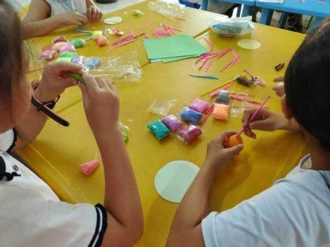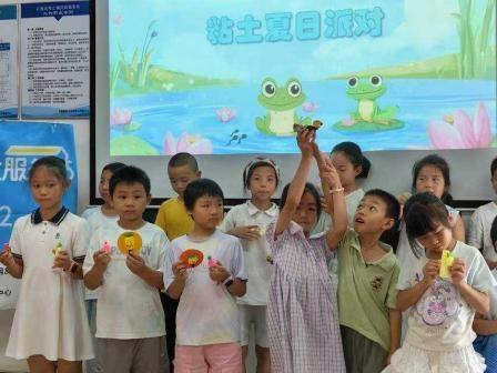 午后三點,碎金似的陽光穿過兒童服務站的玻璃窗,在水磨石地板上織出晃動搖曳的光斑。志愿者溫老師正踮腳掛 “夏日粘土派對” 的橫幅,紅底黃字的布料剛拉平,身后就響起一片細碎的抽氣聲 —— 三十雙眼睛齊刷刷望過來,像盛滿了夏夜星光。
