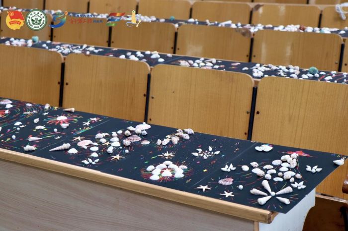隊員們在教室里來回走動,不時停下腳步觀察孩子們的創(chuàng)作,在孩子們遇到困難時給予適當(dāng)?shù)闹笇?dǎo)。經(jīng)過一段時間的創(chuàng)作,一幅幅各具特色的貝殼裝飾畫逐漸成型。這些作品雖然簡單,卻充滿了孩子們的想象力和創(chuàng)造力,每一幅都展現(xiàn)出不同的風(fēng)格和想法。課程接近尾聲時,孩子們將自己的作品展示出來,教室里仿佛變成了一個小小的展覽廳。看著這些用普通貝殼創(chuàng)作出來的藝術(shù)品,孩子們臉上露出了自豪的笑容。